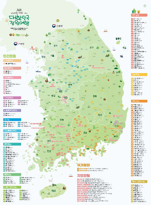 이번에 발간된 ‘2025 대한민국 정원여행지도’에는 국가정원 2곳, 지방정원 13곳, 민간정원 157곳이 소개되어 있습니다. 지도에는 각각의 정원에 대한 위치, 사진, 운영시간 등 유용한 정보들이 담겨 있어 여행 전 계획 세우기에 아주 유용합니다.
